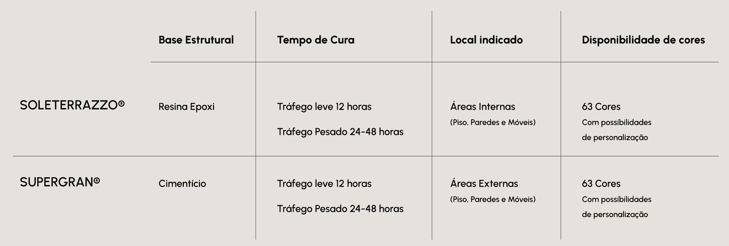 O sistema SOLETERRAZZO® é uma técnica milenar que permite o desenvolvimento das mais variadas formas, cores e desenhos, tornando cada projeto único e exclusivo. A LATICRETE® SOLEPOXY® baseada em seu know-how no desenvolvimento e aplicação de produtos e sistemas de alto desempenho, traz ao mercado um dos melhores sistemas thin-set disponíveis: o SOLETERRAZZO® epóxi.